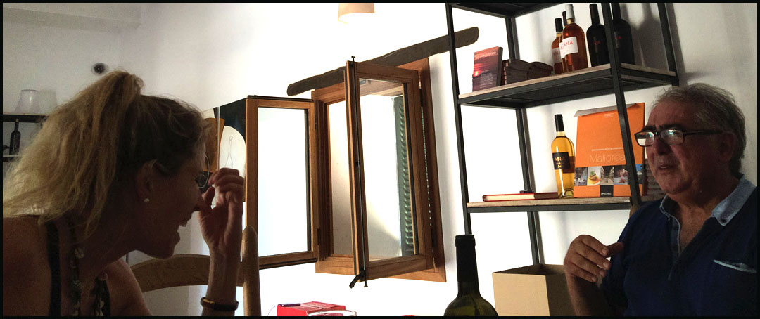 The three of us were sweating in the relentless heat, so we went straight to the cool tasting room for refreshment. Please see our tasting notes for facts, but of course we chatted while we tasted! Pouring their gorgeous, chilled Rosé, Xisco commented that at ANA Vins they are very particular with their maceration of each wine in order to get the exact color they desire. The display must be as appetizing as the aromas and flavors. Of course Rosé wines have a much shorter time in maceration than reds = sitting with their skins and seeds less time to catch only a flush of pink, and to avoid the level of tannins associated with good red structure. That, combined with the terroir of the limestone soil mixed with the local red earth (Call Vermell), make the unique attributes of a good Mallorcan wine.