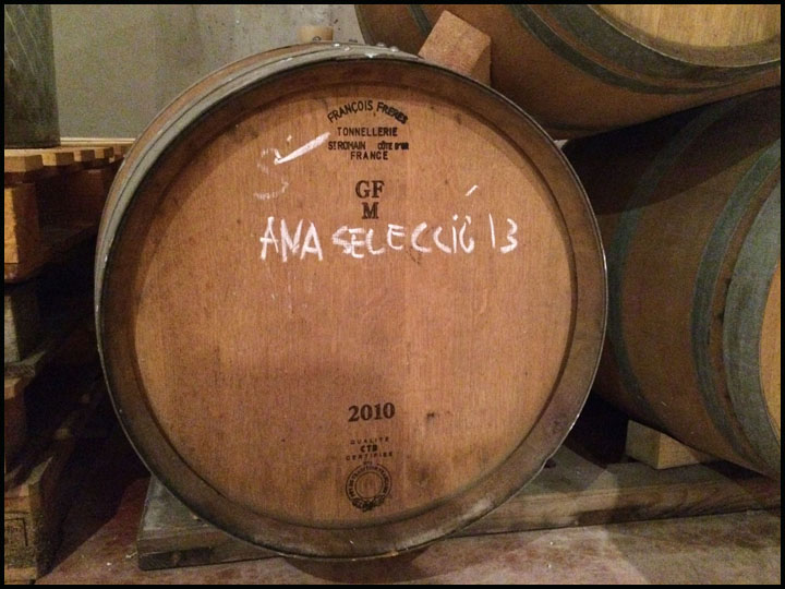 As he poured, Xisco told us that ANA Vins prefers French oak. They find it rounder and fuller, and he said the American oak affects the tannins too much because the wood is younger – young oak is full of young tannins like young grape seeds. He also told us that they cut their first grapes in August, carefully looking for what is ready before September, the normal harvest season.