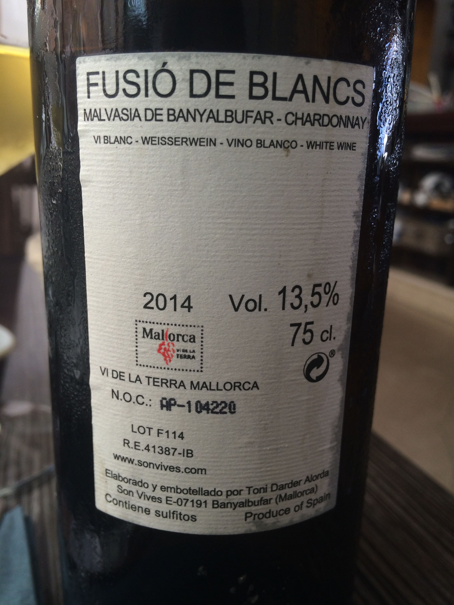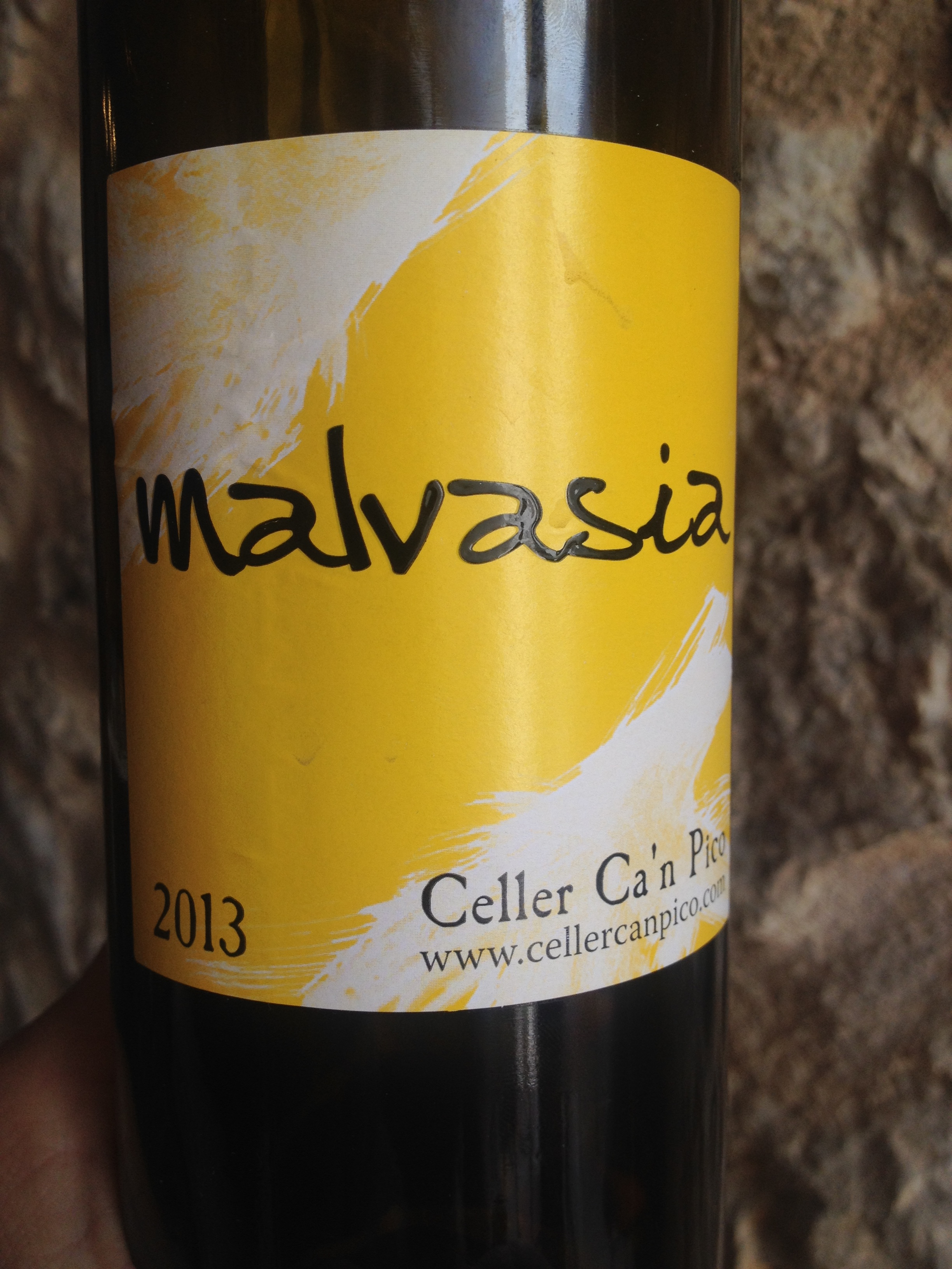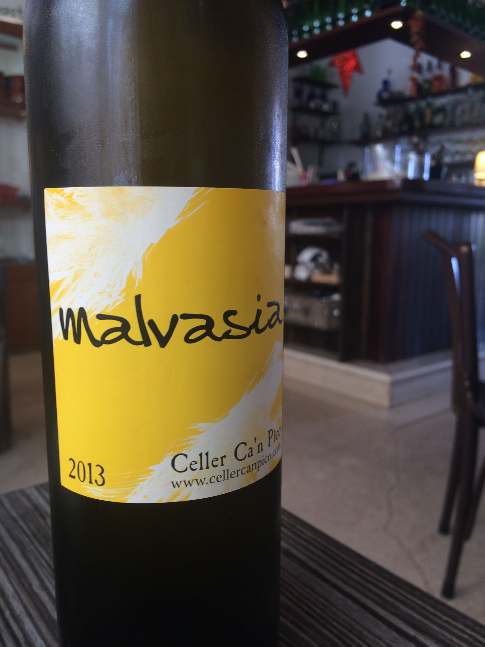 We tried 1 mono variety, 100% Malvasia of course, and 2 blends. Sadly, we were not able to tour the bodega production area because of how late we were. However, the tasting bar is on a lovely veranda, which overlooks the Mediterranean, and the views are exquisitely beautiful! In fact, it overlooks the gorgeous Celler Ca’n Pico estate, and if we didn’t know better, we would have thought those vines belonged to Son Vives. As Mariona poured, we noticed a menu on the wall showing that they can make Pa amb Oli here (bread & olive oil with sliced meats or cheeses) to pair with their wines. We’d highly recommend that, but book in advance. Or bring your own tasting-complementary picnic for the bottle you’ll want to buy here after tasting! The tasting area is right off the ‘main’ road, but you feel like a millionaire enjoying these wines with a view. Combining a lunchtime tasting here on the veranda with an afternoon tasting at Ca’n Pico would make for a great day!