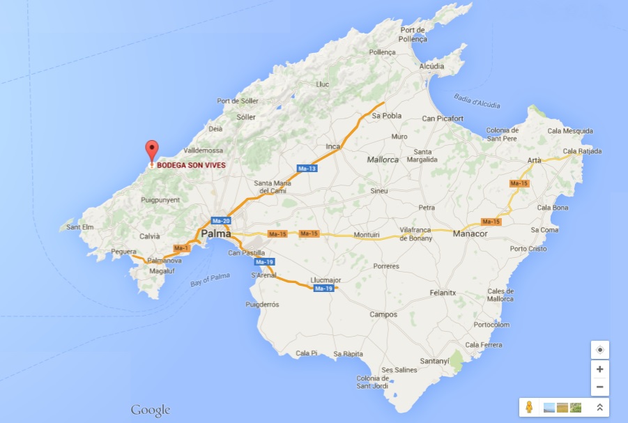 Celler Son Vives is part of the Island group Vi de la Terra Serra de Tramuntana which is comprised of 18 municipalities in the protected UNESCO World Heritage Serra de Tramuntana, reaching from Cap de Formentor to Andratx. It is characterized by the famous stone “bancales” which are agricultural terraces mostly made during the Moorish occupation which lasted approximately 500 years from the 700s to 1200s AD. Built of local stone and rich soil, the terraces prevent soil erosion and allow the Malvasia vine roots to grow deep in well draining guarded soil. The North-facing coast offers maximum sun time with cooler temperatures, but it is more difficult to pick and creates differing ripening times – therefore requiring a lot of individual care!