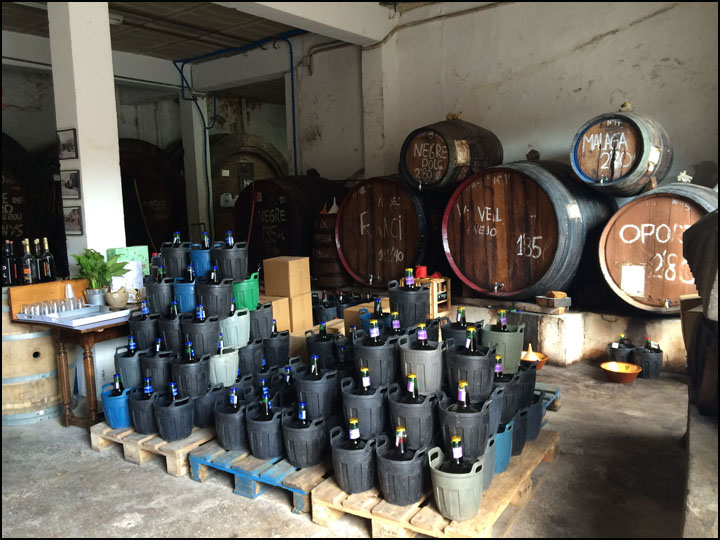 Taking in the gorgeous vaulted ceilings and barrels lining traditional plaster walls, Ana told us that 2015 is the last year that most of their production will have been done over in Manacor, their barrel aging and bottling done here, and their storage kept elsewhere in Petra. That reminded us of Vins Miquel Gilabert which is also stretched across multiple locations! But in this case, within two weeks of our tasting, a new Bodegas Miquel Oliver facility on the Manacor-Petra road will open and house it all!